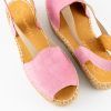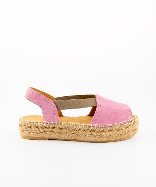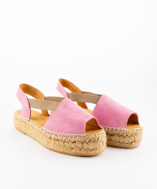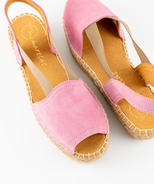 Alpargata con plataforma elaborada en serraje. Talonera de piel .Gomas para tener un ajuste perfecto Suela vulcanizada de yute teñido y caucho, forrada con microfibra y plantilla de látex, ofreciendo mayor confort al caminar. Plataforma de 3.5 cm. Hechas totalmente a mano en España.