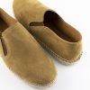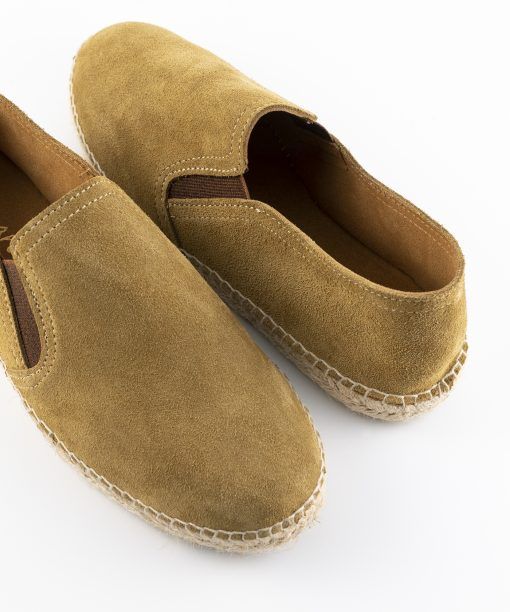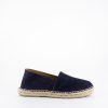 Alpargata plana de hombre confeccionada en serraje, con elásticos laterales, adaptándose a todos los pies. Suela vulcanizada de yute natural y caucho, forrada con piel y plantilla de látex ofreciendo mayor confort al caminar. Altura de suela de 2 cm. Hechas totalmente a mano en España.